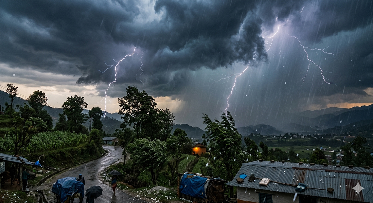 पश्चिमी प्रणाली पूर्वतर्फ सर्दै गएकाले देशका धेरै स्थानमा मेघगर्जन, चट्याङ, हावाहुरी र असिनासहित वर्षा हुने सम्भावना रहेको विभागले जनाएको छ। प्रतिकूल मौसमका कारण जनजीवन, कृषि, यातायात तथा विद्युत् सेवामा असर पर्न सक्ने भएकाले आवश्यक सतर्कता अपनाउन विभागले आग्रह गरेको छ।
