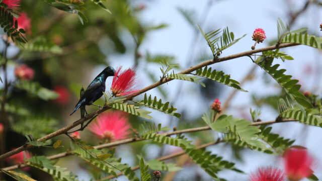 सुनसरीको इनरुवा नगरपालिका-४ मा फूलको रस चुस्दै गरेको भाले बुङ्गे चरा (पर्पल सनबर्ड)। प्रजनन समयमा आफ्नो रङलाई गाढा बैजनी र धातु जस्तै चम्किलो बनाउने यो चराले मुख्यतः फूलको रस र साना किराहरू खाई वनस्पतिको परागसेचनमा समेत मद्दत पुर्‍याउँछ। तस्बिर : [...]